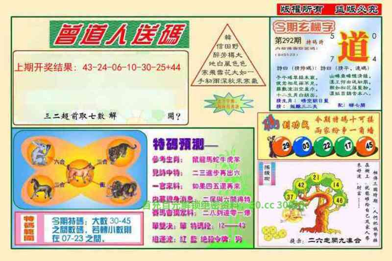 292期 | 蛇牛鸡猴羊龙狗 | 龙02准 |